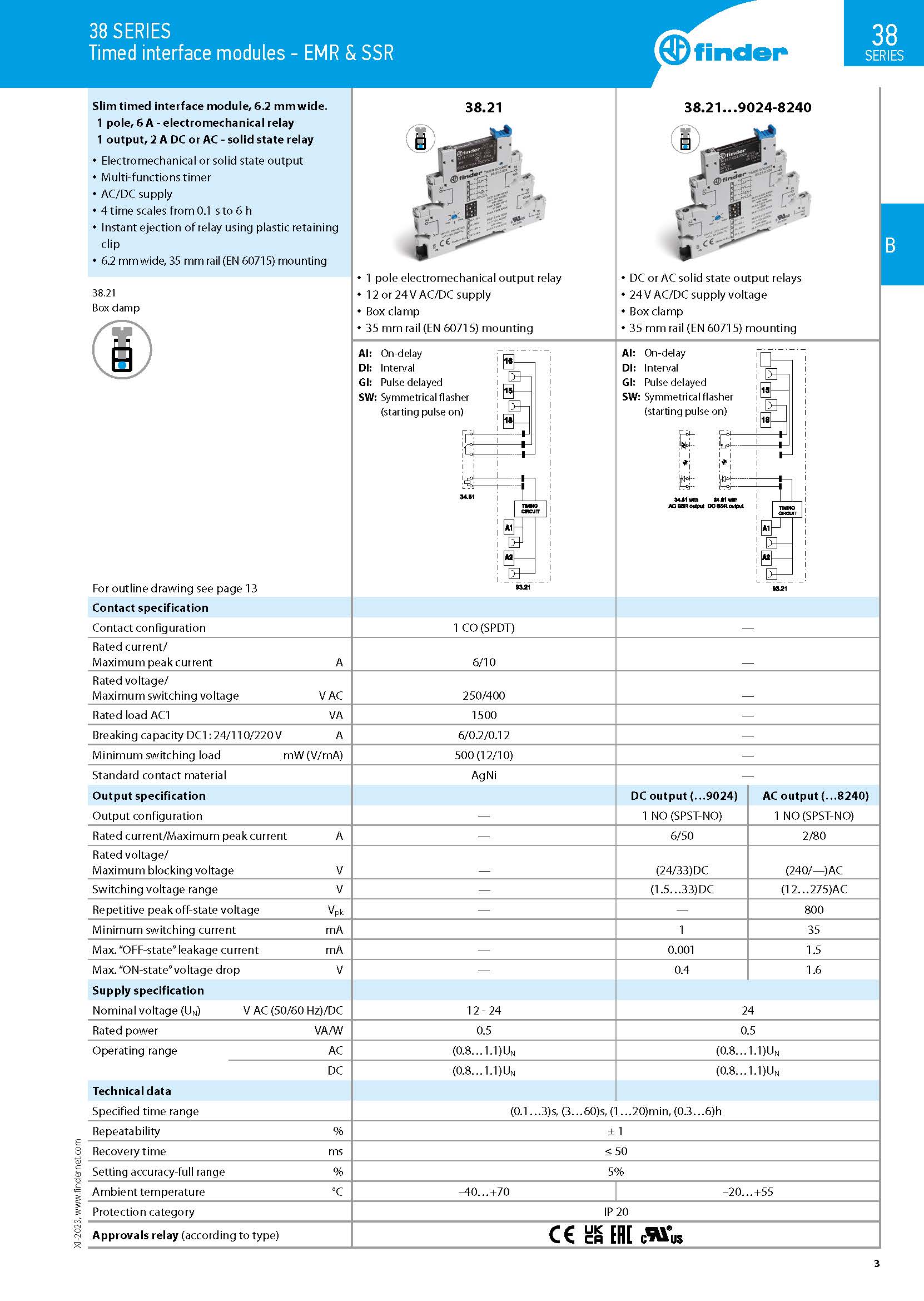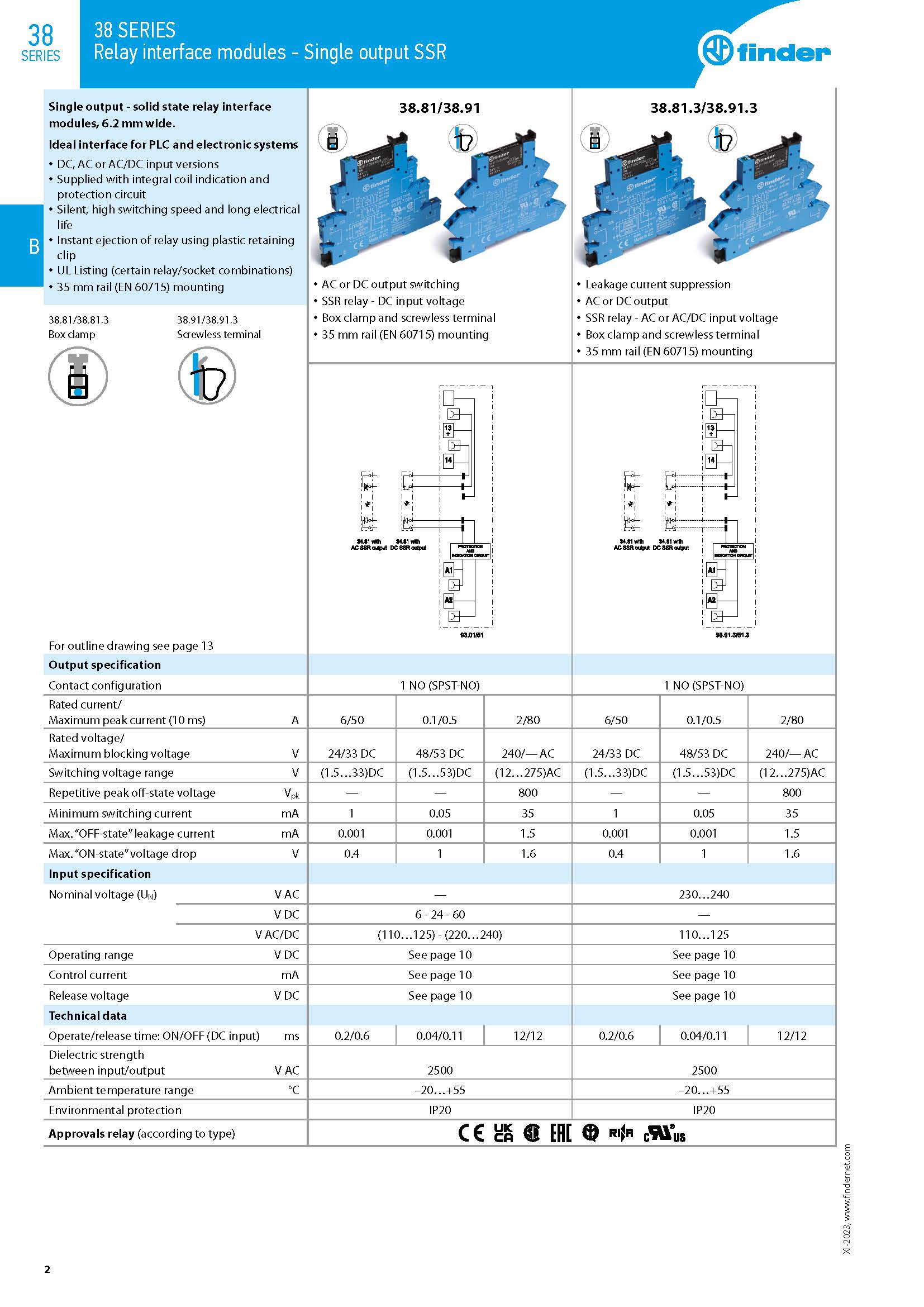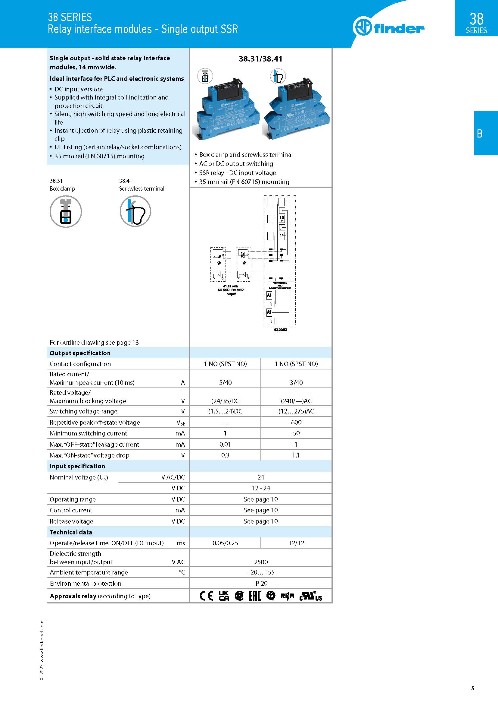 Type 38.01 Relay Interface Modules with (EMR) electromechanical relay, 1 CO 16 A, width 14 mm. Designed for interfacing with PLC systems