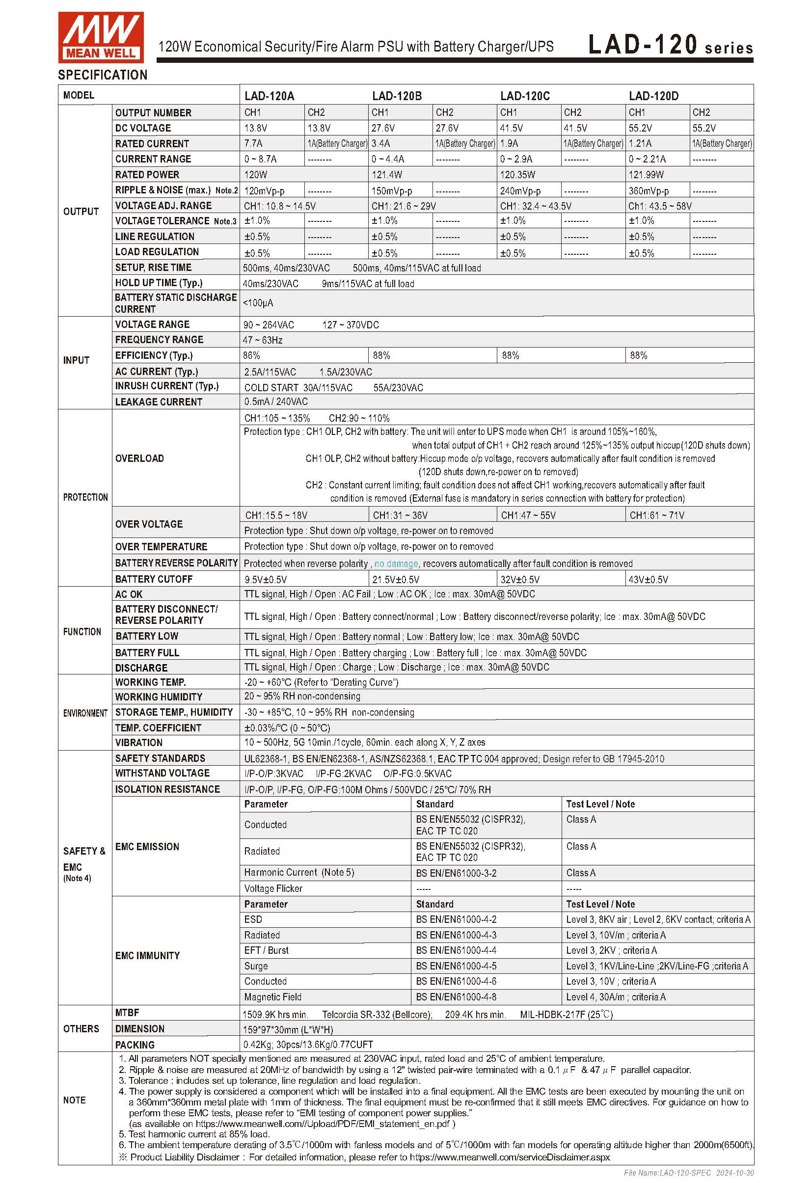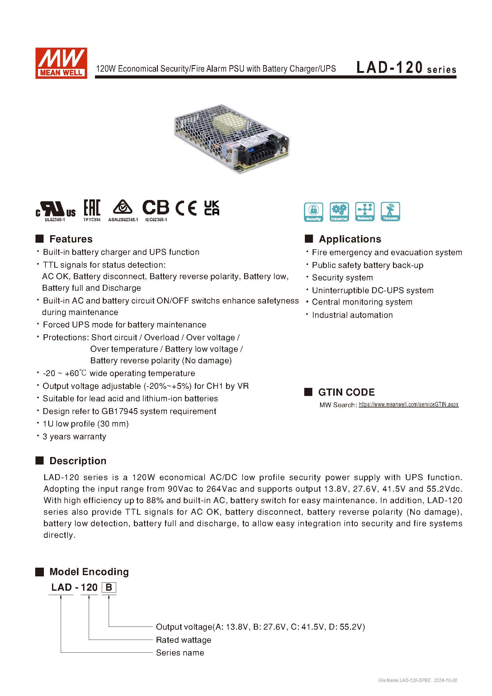- The LAD series has UART communication function, and posses AC and battery circuit switches with design refer to GB 17945-2010 safety regulations