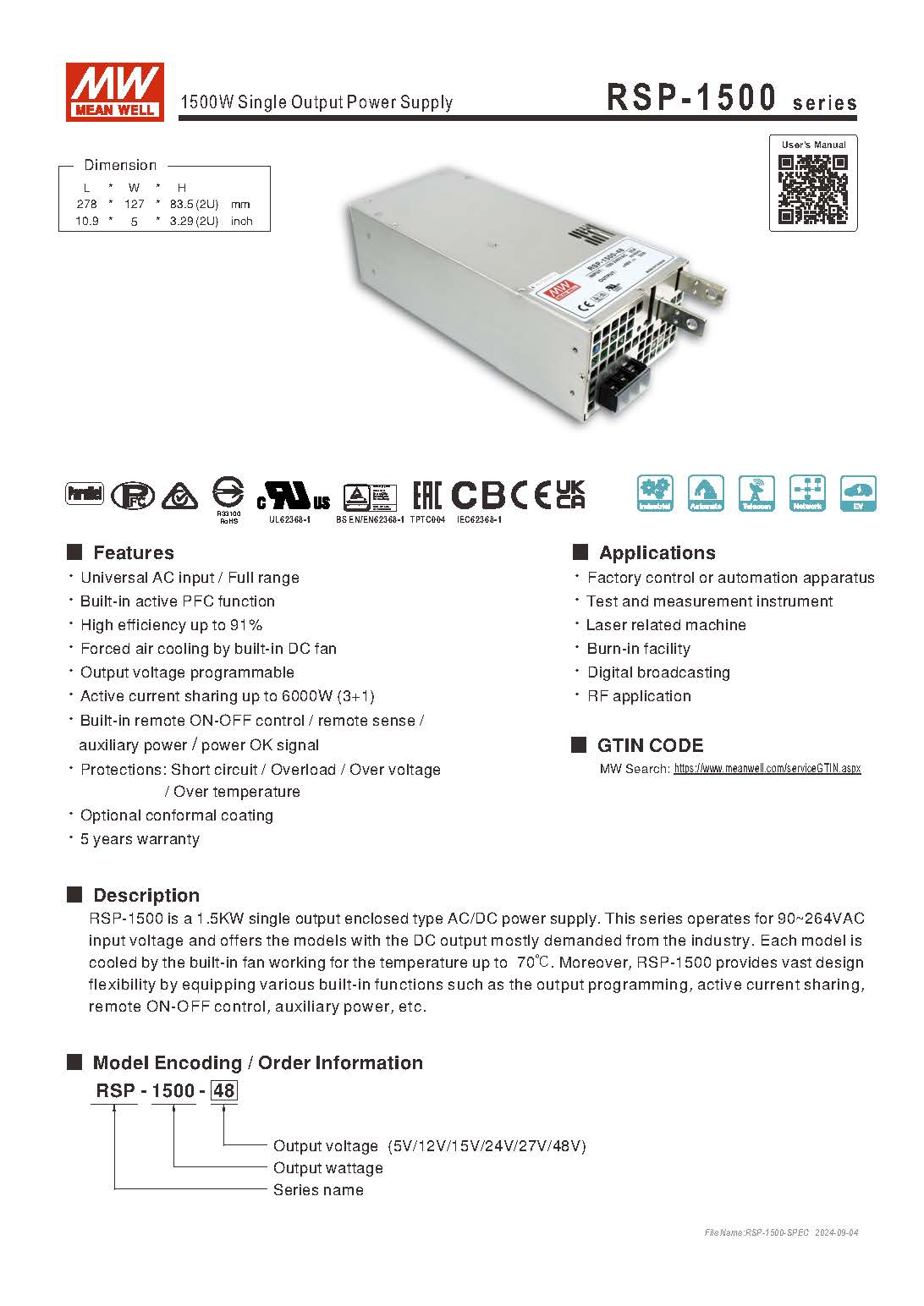 Input Voltage: 90 ~ 264VAC, 127~370VDC